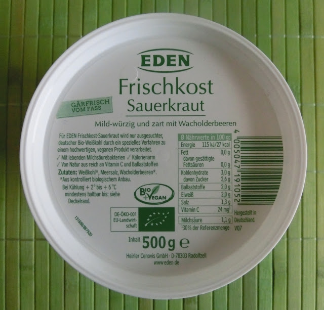 (das Sauerkraut von Eden schmeckt "intensiver" als das von Demeter - vermutlich durch mehr Salz und den zusätzlichen Wacholderbeeren - dadurch schmeckt es pur etwas besser.